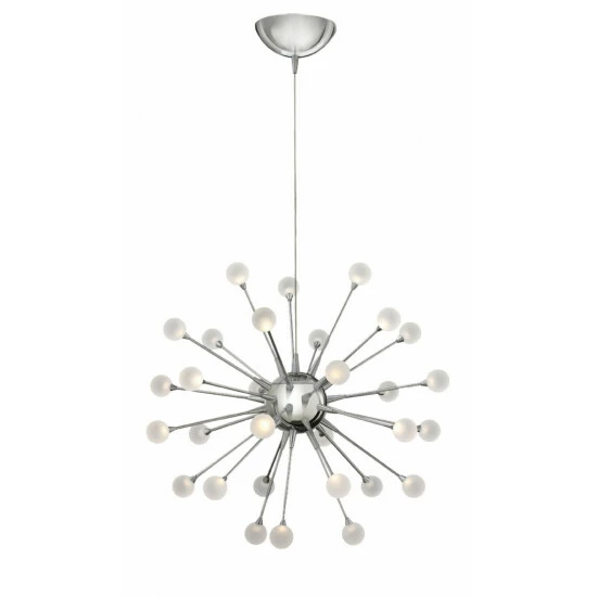 Impulse is a dynamic LED design with a striking contemporary shape. Petite stems radiate from the spherical body while miniature acrylic ornaments of light glow at its tips. An array of chic finishes in Polished Chrome, Polished Gold, Black Chrome, and Cloud (White) intensifies its stunning effect.