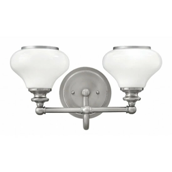 Ainsley’s traditional silhouette charms with distinctive details like retro modern turned cups. Cased opal glass shades are accented with an elegant Brushed Nickel trim ring.