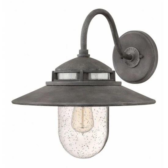 Industrial-inspired Atwell recalls turn-of-the-century American factory lighting. Aged Zinc and Oil Rubbed Bronze finish options reinforce its vintage silhouette. Clear seedy glass, cast glass holder and authentic details like gooseneck arms and bespoke back plate and canopy enhance Atwell’s nostalgic appeal.