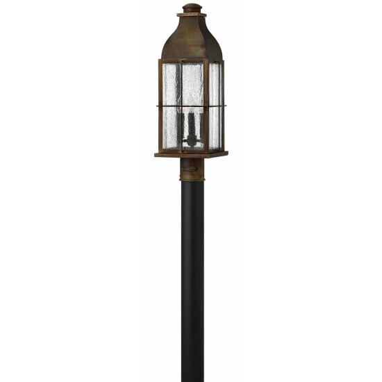 Bingham’s traditional style recalls a turn-of-the-century gas light reproduction. The vintage look is nautical in nature and recognizes Hinkley’s origins on the shores of Lake Erie. The construction features clear seedy glass while candelabra lamping completes the authentic style. Available in either a Greystone or Sienna finish.