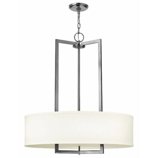 Hampton is a modern transitional design, offering the ultimate in urban sophistication. The minimal rectangular frame, paired with a decorative acrylic etched bottom lens, is softened by a contemporary off-white linen drum shade.