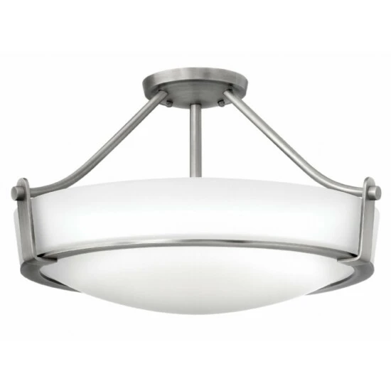 Hathaway’s striking design features a bold shade held in place by three intersecting, floating arms with unique forged uprights and ring detail for a modern style.