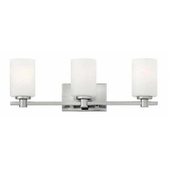 Karlie’s clean design is transitional in style and will complement a variety of d??cor. Featuring precision die-cast cups and cylindrical, etched opal glass, it is available in Brushed Nickel and Chrome.