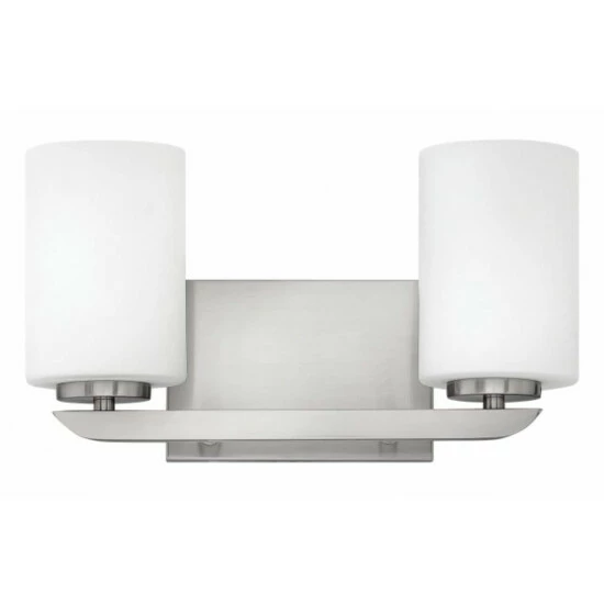 Clean and crisp, Kyra’s minimalist design is anchored with a bold yet simple aesthetic. The sleek cross bar ends with a subtle curve for an element of softness. Rich finish options of Brushed Nickel or Polished Nickel complement the elegant etched opal glass.