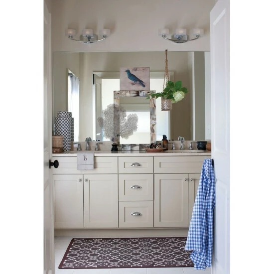Meridian features minimal transitional styling with clean lines, soft curves and low-profile faceted 1/2″ thick glass. This simplistic design will add a crisp focal point to any decor.