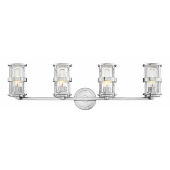 Inspired by the sea, Noah’s unique design offers a fresh spin on coastal chic. The sturdy steel construction incorporates nautical touches with lantern-like elements. A bold center band secures the clear seedy glass shade, elegantly diffusing the light source. Refined construction details complete this updated nautical design that will complement a range of vanity styles from coastal to contemporary.