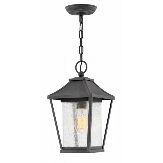 Palmer brings a dash of southern charm to a classic Americana lantern design with vintage rivets, sweeping roof and oversized loop ensuring a timeless aesthetic. Clear seedy glass and a Museum Black finish combine for a chic updated traditional style.