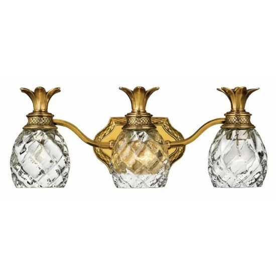A Hinkley classic, the ornate Plantation collection features exceptional pineapple shaped, clear optic glass that makes a noble statement. The elaborate, decorative cast detailing is accentuated by the its lush finish.