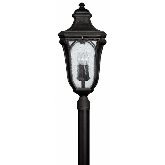 Trafalgar’s grand design in sturdy cast aluminum adds historical flair with delicate scroll arch detail, authentic distressed finish and clear seedy glass.