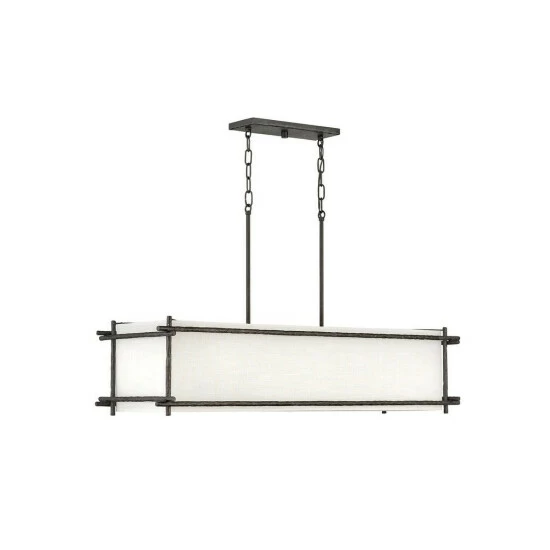 Tress approaches style from a different angle. The off-white textured fabric shade is bias-cut and framed in overlapping, hammered metal rods of Champagne Gold or Forged Iron. This simple structure translates into a sophisticated trapezoidal prism. Tress uses this natural look to add an organic feel to transitional decor.